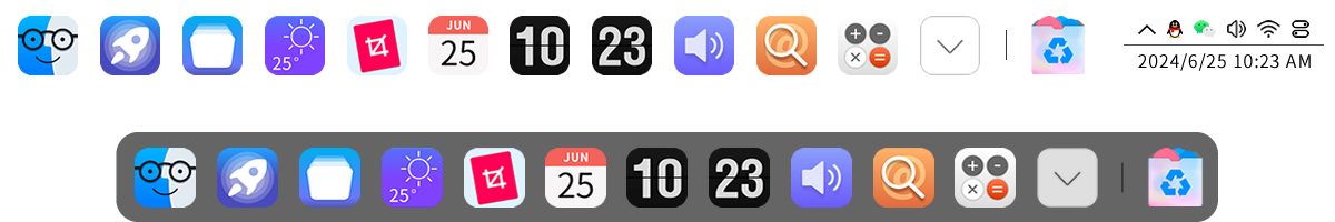 可完全替代系统自带的工具栏,也可以作为桌面管理辅助工具使用,不仅能提高效率还能进行功能扩展